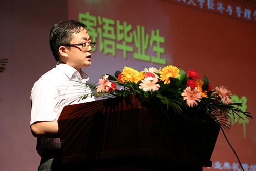院长周德群教授以夏至切入话题,以“庆祝、感恩、祈福”三个关键词寄语毕业生,首先向对本科生和家人表示祝贺,庆祝毕业生圆满完成学业,希望毕业生带着学院的祝福与精神踏上新的征程,取得新成就;希望同学们心中充满感恩之情,感谢父母与家人,感谢辛勤耕耘的老师,感谢早夕相处的同学们,同时,院长表示感谢毕业生选择南航,选择经济与管理学院,保证了学院永远有优质的生源。最后祈福,期待大家毕业后为经管的建设添砖加瓦。对于马上就要踏入社会继续深造的毕业生提两点希望:第一仰望星空,怀揣梦想。第二:脚踏实地,用心做事,全场同学们用热烈的掌声表示铭记院长的谆谆教诲。