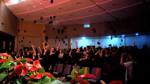 温情的毕业典礼结束后是隆重的学位授予仪式,仪式由学院党委副书记许静老师主持。在庄严的音乐声中,身着学位服的学生全体起立,恭迎权杖入场。学位委员会主席周德群教授手执权杖,率领学位委员会成员缓步入场。在学位权杖的见证下,周德群教授和副主席张卓教授以及学位委员会的7名成员为在场的近300名毕业生一一扶正流苏并合影留念。